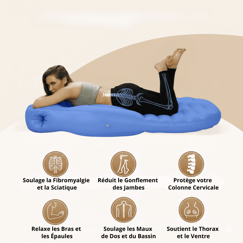 Notre matelas est la station de décompression qu'il vous faut. Il élimine la pression sur vos nerfs, aligne parfaitement votre colonne vertébrale, et soutient le thorax et le ventre simultanément. C'est la seule façon d'obtenir un soulagement thérapeutique actif.