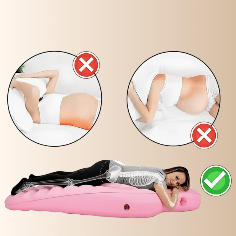 Dormir sur le dos est déconseillé en raison de la pression sur la veine cave. Dormir sur le côté peut provoquer des douleurs aux hanches. Le matelas MummyNest vous permet de dormir sur le ventre en toute sécurité, déchargeant votre colonne, et relâchant vos hanches et votre dos pour un repos optimal.